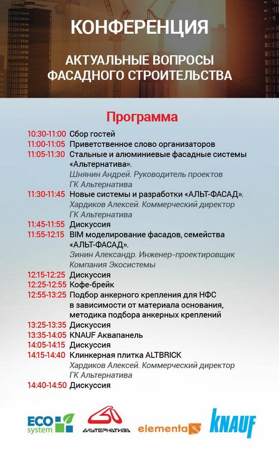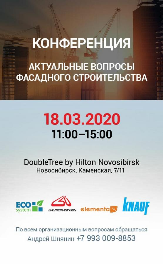 Компания ЭКОсистемы выступит с докладом на конференции "Актуальные вопросы фасадного строительства", которая состоится 18 марта 2020 года в Новосибирске. Приглашаем всех желающих принять участие в данном мероприятии!