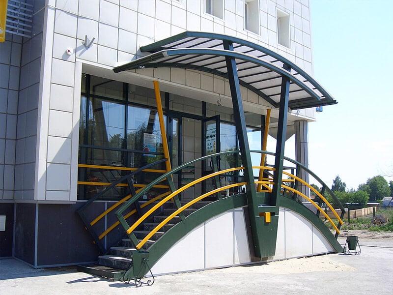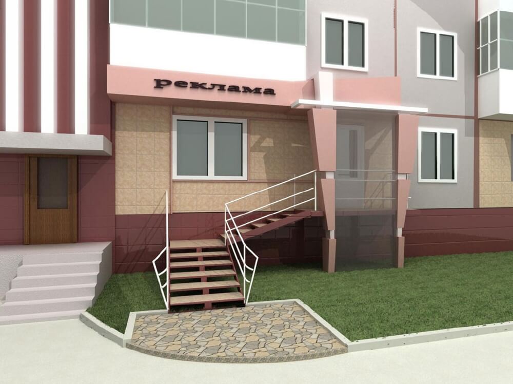 Комплекс включает в себя не только порог и двери, но и козырьки, навесы, тамбуры, лестницы, клумбы и многое другое. Это позволяет решать эстетические задачи в процессе проектирования. При этом важно обеспечить: